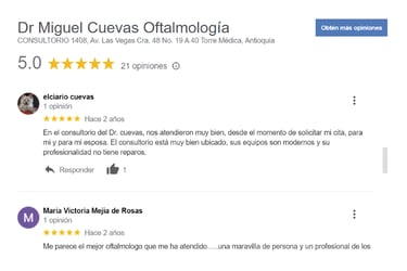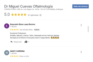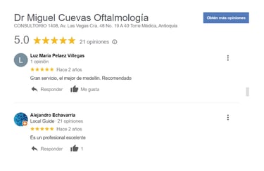 Desde entonces, con más de15 años de experiencia, el Dr Cuevas se ha dedicado al manejo integral de enfermedades oftalmológicas, con énfasis en patologías de la córnea, superficie ocular y enfermedades inflamatorias como las uveítis y la enfermedad por ojo seco. Además, ha realizado más de 2000 cirugías de catarata, más de 500 trasplantes de córnea y procedimientos refractivos para la miopía, hipermetropía, astigmatismo y presbicia, entre otros.